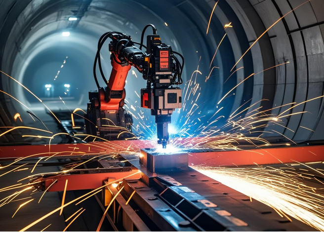 科技创新激活力 在隧道建设中,采取智链融合、数智筑基等举措,将感知技术、AI智能算法、新型装备等技术深度融合,施工效率提升约150%,综合成本下降约30%,成品合格率达99%以上。 机器人切割焊接工艺 运用薄壁墩智能液压塔式顶升爬模,实现模板的自动爬升,有效保障桥梁施工安全,提升施工效率。