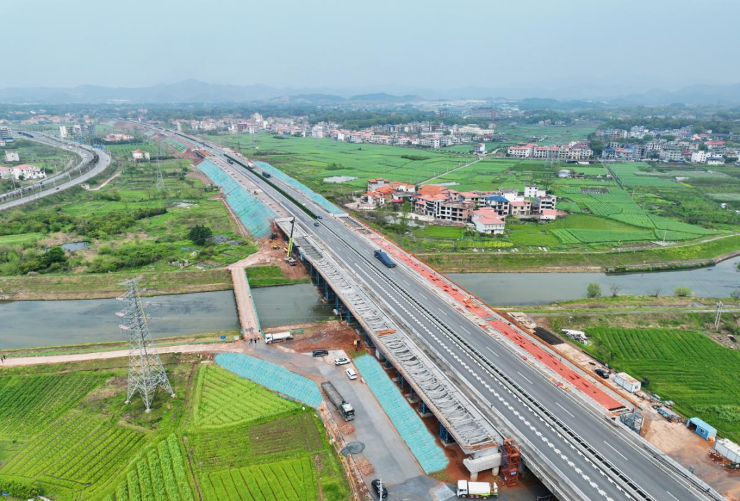 从桥梁建设中对施工精度的极致追求与对生态环境的悉心呵护,到附属工程里智能盘库带来的管理效能跃升;从交安标线施工中科技赋能的品质升级,再到路基工程里生态防护与结构稳固的双向奔赴——昌金改扩建项目以“四新技术”为纽带,将科技基因深度融入工程建设的每一个环节,勾勒出一幅“精度与效率并存、发展与环保共生”的现代化建设图景,为交通基础建设的高质量发展提供了可借鉴、可推广的实践经验。
