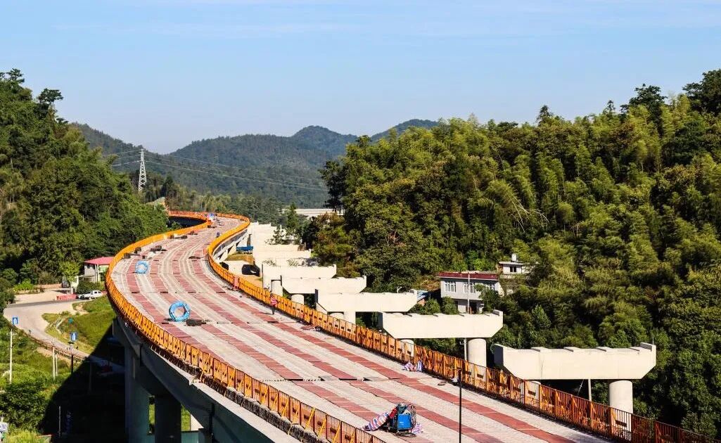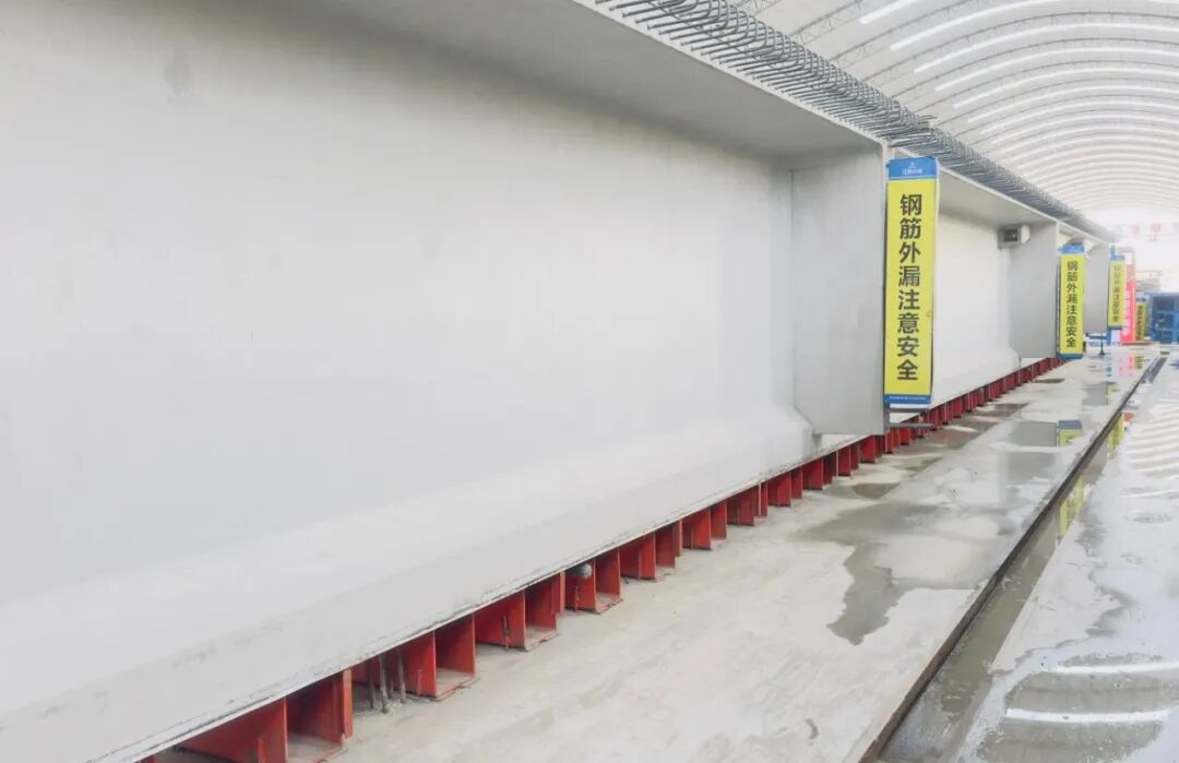 在跨G319国道特大桥建设中,项目采用薄壁墩装配式自升降多功能液压爬模工法,无需额外设置预埋件便能实现模板快速爬升,较传统工艺施工效率提升30%;潭口大桥则创新应用“无拉杆”防撞墙工艺,采用“5mm钢模+2mm不锈钢”定制模板,顶部设置“螺杆拉止式”定模结构,底部仅预埋一道11厘米高的拉杆,拆模后通过土工布覆盖+软管喷淋养护,最终呈现“无疤痕”的完美外观质感,成为项目“品质标杆”。